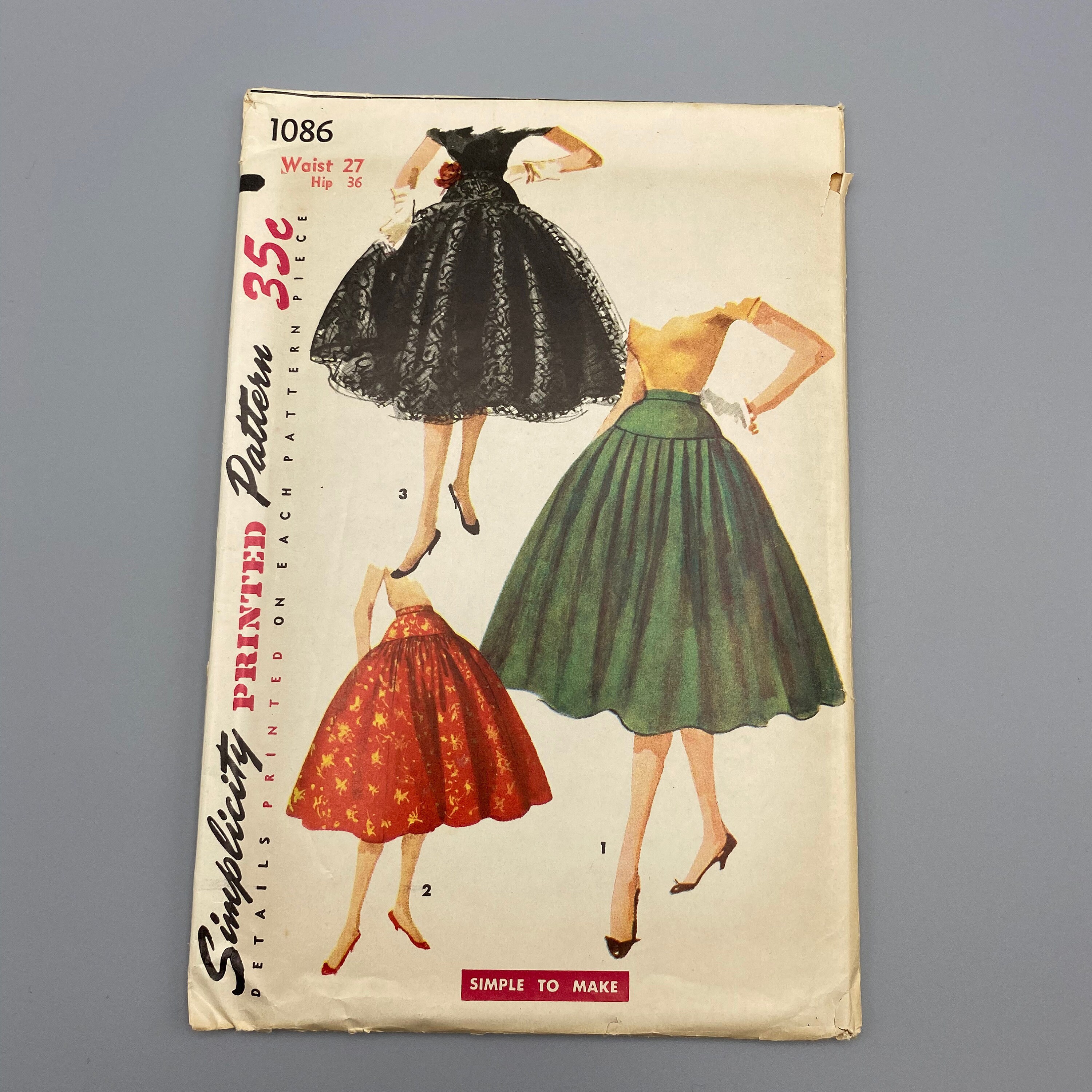 Simplicity 1086 Waist 27 1950s Full Circle Skirt Sewing Etsy